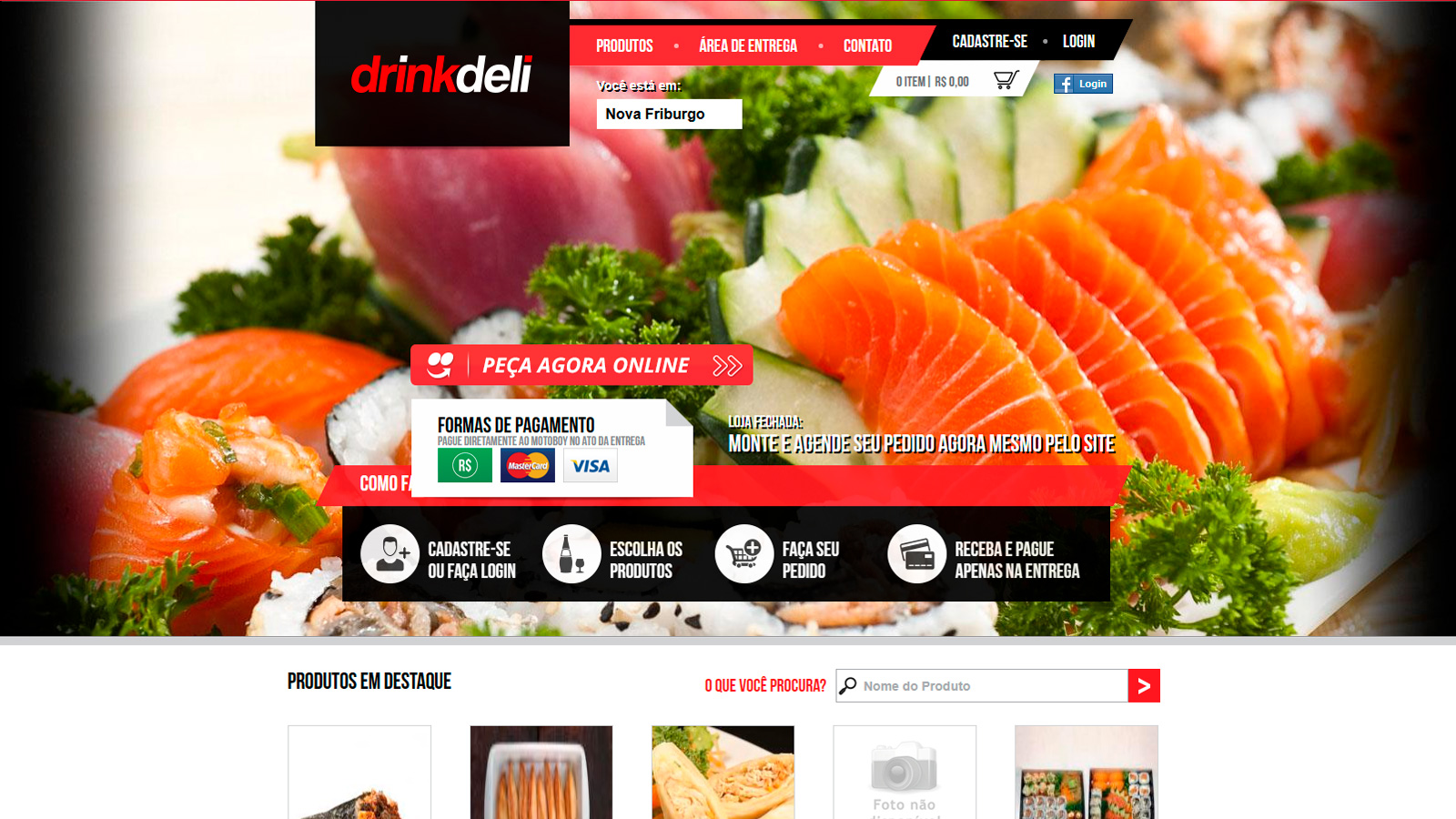 Em 2011, entramos no universo dos sabores com a DRINK DELI. Era uma plataforma de e-commerce focada em Delivery, também desenvolvida do zero por nós.